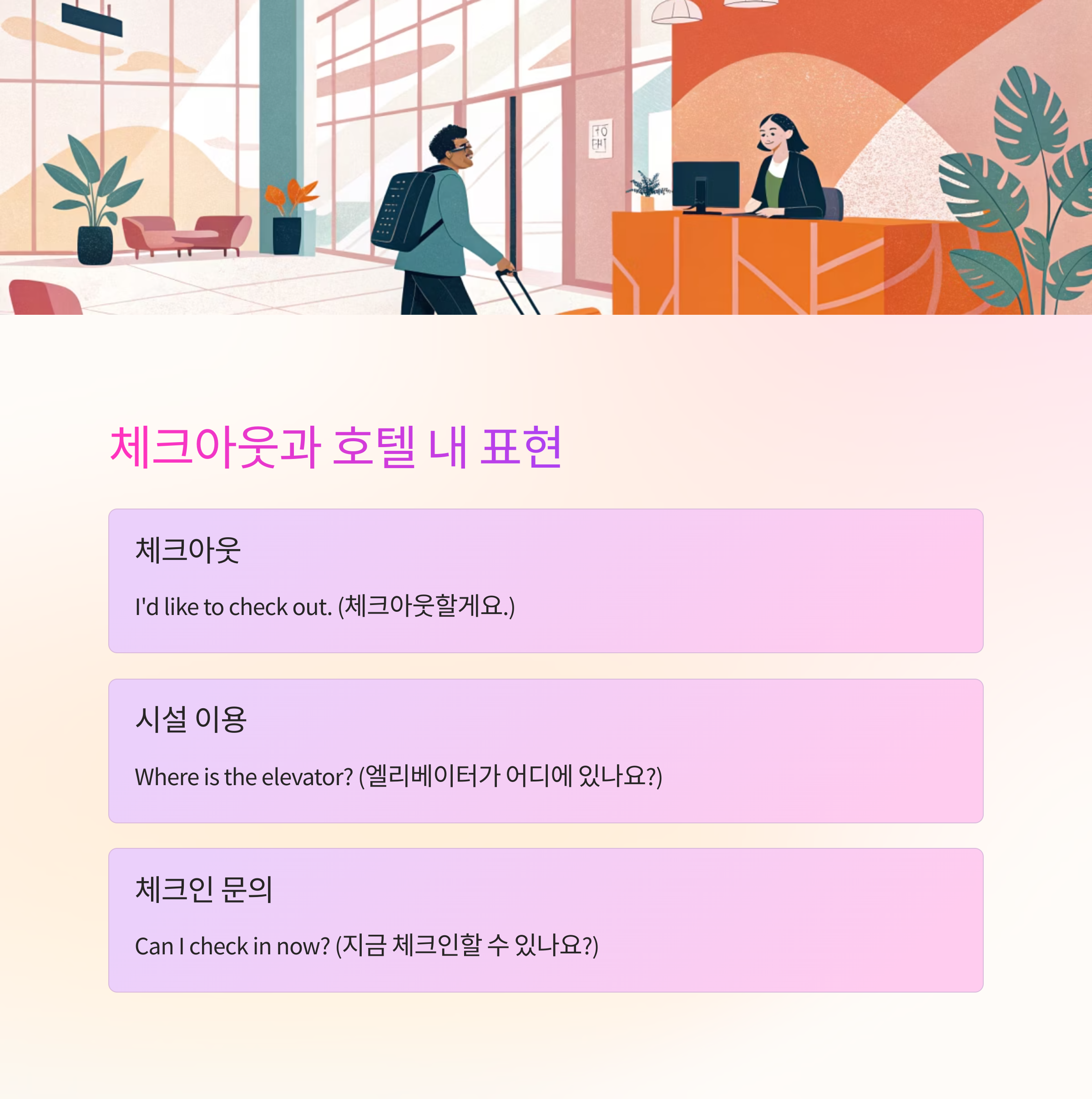 해외여행이 설렘으로 시작되지만, 가장 긴장되는 순간 중 하나는 공항에 도착해서 호텔에 체크인하기 전까지의 과정입니다. 영어가 익숙하지 않다면 이 단계에서 당황할 수 있어요.