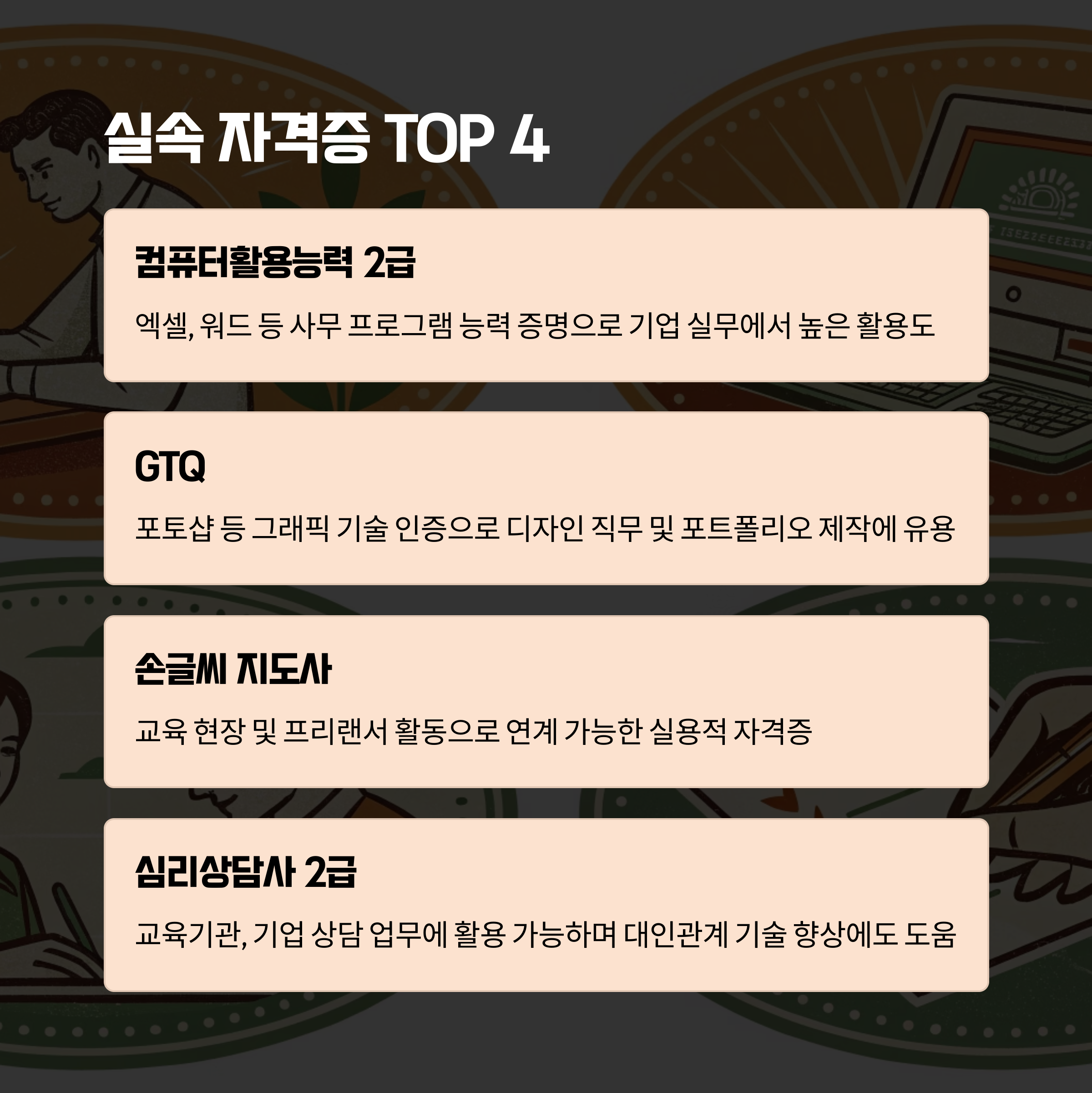 특히 직장인, 대학생, 전업주부 등 다양한 상황에 계신 분들에게도 잘 맞는 자격증 위주로 소개하니 꼭 끝까지 읽어보세요!